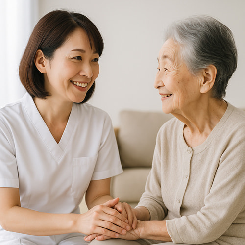 訪問するのは、厚生労働大臣認可の国家資格を持つ施術者です。ご本人もご家族も、安心していただけるよう、心と心でつながるケアを目指しています。